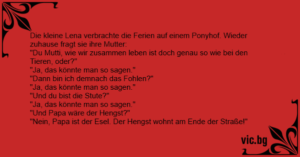 "Nein, Papa ist der Esel. Der Hengst wohnt am Ende der Straße!"