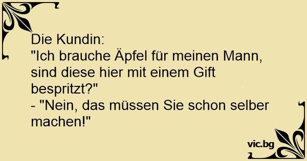 "Ich brauche Äpfel für meinen Mann, sind diese hier mit einem Gift bespritzt?"