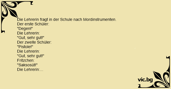 Die Lehrerin fragt in der Schule nach Mordinstrumenten.