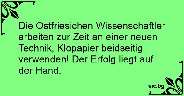 Die Ostfriesichen Wissenschaftler arbeiten zur Zeit an einer neuen Technik, Klopapier beidseitig verwenden! Der Erfolg liegt auf der Hand.