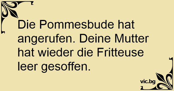 Die Pommesbude hat angerufen. Deine Mutter hat wieder die Fritteuse leer gesoffen.