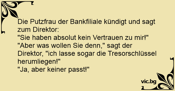 Die Putzfrau der Bankfiliale kündigt und sagt zum Direktor: