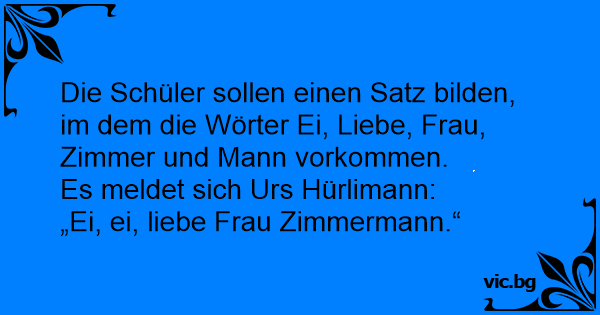 Die Schüler sollen einen Satz bilden, im dem die Wörter Ei, Liebe, Frau, Zimmer und Mann vorkommen.