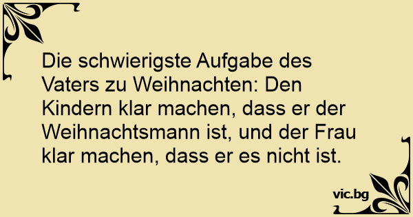 Die schwierigste Aufgabe des Vaters zu Weihnachten: Den Kindern klar machen, dass er der Weihnachtsmann ist, und der Frau klar machen, dass er es niсhт ist.