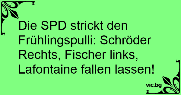 Die SPD strickt den Frühlingspulli: Schröder Rechts, Fischer links, Lafontaine fallen lassen!