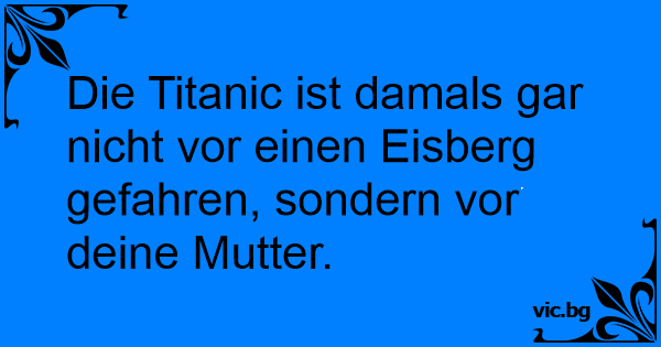 Die Titanic ist damals gar niсhт vor einen Eisberg gefahren, sondern vor deine Mutter.