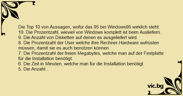Die Top 10 von Aussagen, wofür das 95 bei Windows95 wirklich steht: