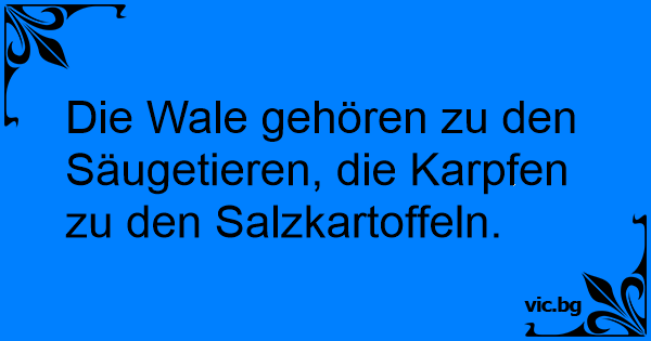 Die Wale gehören zu den Säugetieren, die Karpfen zu den Salzkartoffeln.