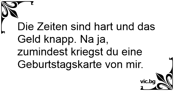 Die Zeiten sind hart und das Geld knapp. Na ja, zumindest kriegst du eine Geburtstagskarte von mir.