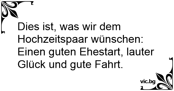 Dies ist, was wir dem Hochzeitspaar wünschen: Einen guten Ehestart, lauter Glück und gute Fahrt.