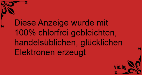 Diese Anzeige wurde mit 100% chlorfrei gebleichten, handelsüblichen, glücklichen Elektronen erzeugt