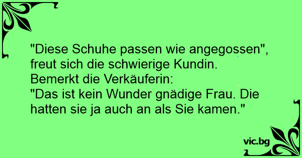 "Diese Schuhe passen wie angegossen", freut sich die schwierige Kundin.