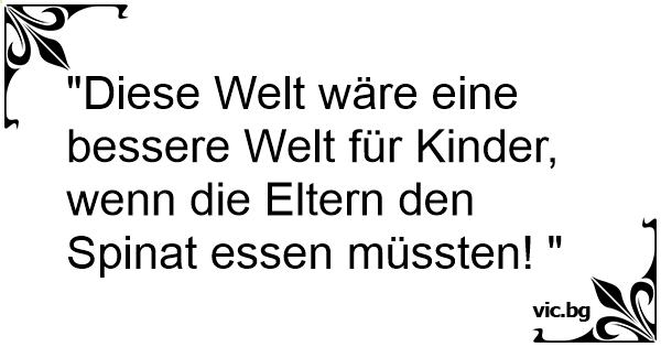 "Diese Welt wäre eine bessere Welt für Kinder, wenn die Eltern den Spinat essen müssten! "