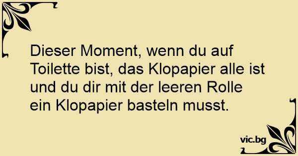 Dieser Moment, wenn du auf Toilette bist, das Klopapier alle ist und du dir mit der leeren Rolle ein Klopapier basteln musst.