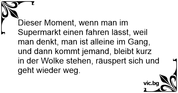 Dieser Moment, wenn man im Supermarkt einen fahren lässt, weil man denkt, man ist alleine im Gang, und dann kommt jemand, bleibt kurz in der Wolke stehen, räuspert sich und geht wieder weg.