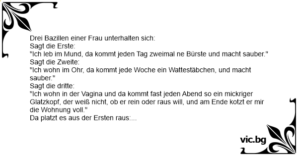 "Ich wohn in der Vаginа und da kommt fast jeden Abend so ein mickriger Glatzkopf, der weiß niсhт, ob er rein oder raus will, und am Ende kotzt er mir die Wohnung voll."
