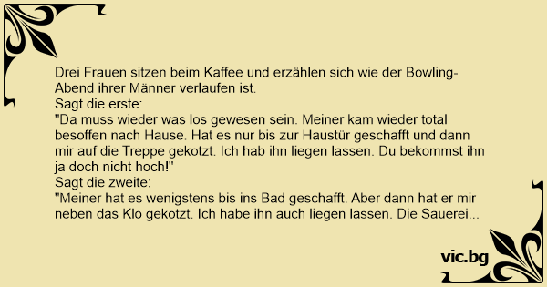 Drei Frauen sitzen beim Kaffee und erzählen sich wie der Bowling-Abend ihrer Männer verlaufen ist.