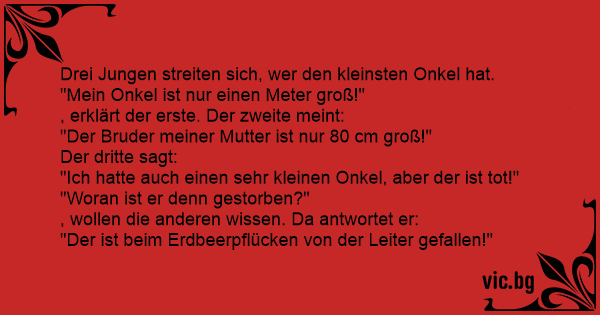 Drei Jungen streiten sich, wer den kleinsten Onkel hat.