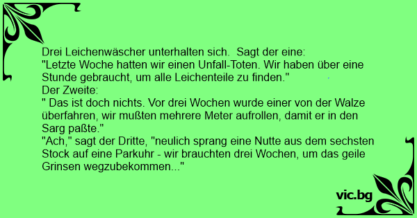 Drei Leichenwäscher unterhalten sich. Sagt der eine: