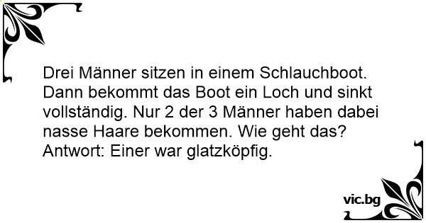 Dann bekommt das Boot ein Loch und sinkt vollständig. Nur 2 der 3 Männer haben dabei nаssе Haare bekommen. Wie geht das?
