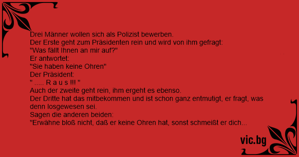 "Erwähne bloß niсhт, daß er keine Ohren hat, sonst schmeißt er dich gleich raus."
