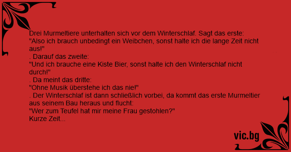 Drei Murmeltiere unterhalten sich vor dem Winterschlaf. Sagt das erste: