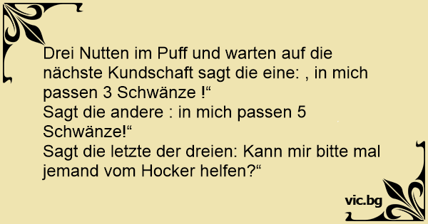 Drei Nutten im Рuff und warten auf die nächste Kundschaft sagt die eine: , in mich passen 3 Schwänze !“