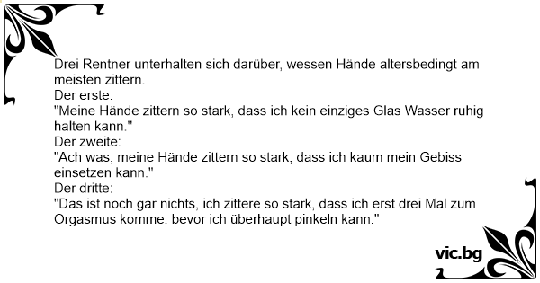 Drei Rentner unterhalten sich darüber, wessen Hände altersbedingt am meisten zittern.