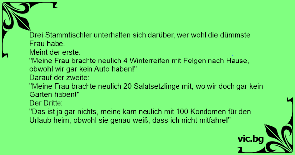 Drei Stammtischler unterhalten sich darüber, wer wohl die dümmste Frau habe.