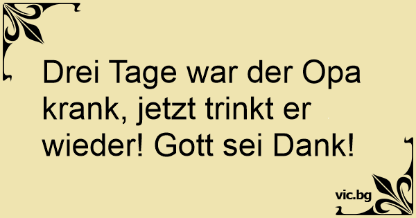 Drei Tage war der Opa krank, jetzt trinkt er wieder! Gott sei Dank!