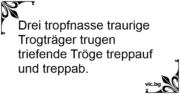 Drei tropfnasse traurige Trogträger trugen triefende Tröge treppauf und treppab.