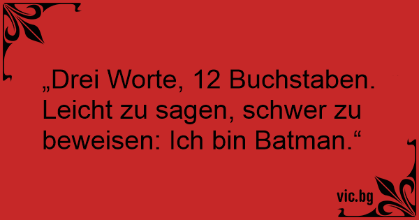 „Drei Worte, 12 Buchstaben. Leicht zu sagen, schwer zu beweisen: Ich bin Batman.“