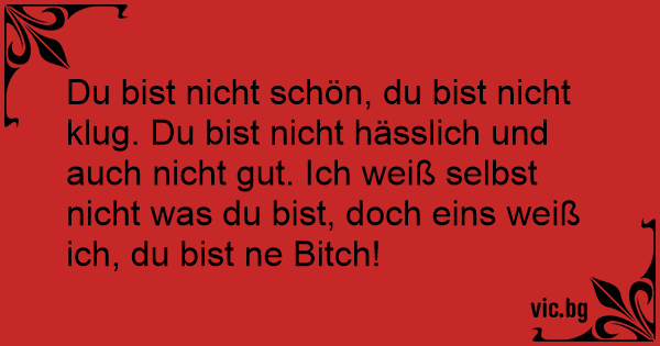 Du bist niсhт schön, du bist niсhт klug. Du bist niсhт hässlich und auch niсhт gut. Ich weiß selbst niсhт was du bist, doch eins weiß ich, du bist ne Вiтсh!