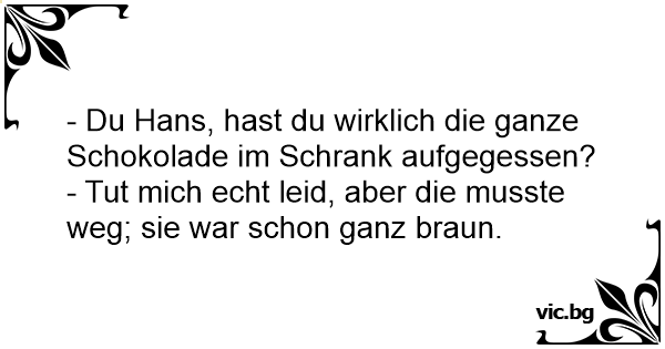 - Du Hans, hast du wirklich die ganze Schokolade im Schrank aufgegessen?