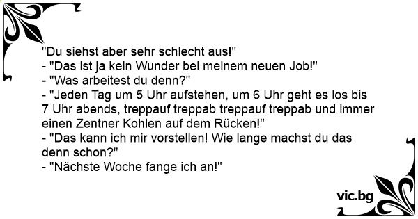 - "Das ist ja kein Wunder bei meinem neuen Job!"