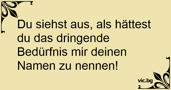 Du siehst aus, als hättest du das dringende Bedürfnis mir deinen Namen zu nennen!
