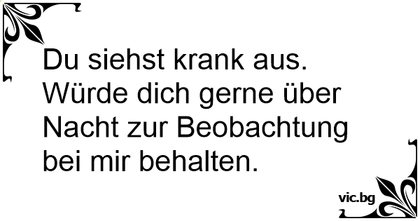 Du siehst krank aus. Würde dich gerne über Nacht zur Beobachtung bei mir behalten.