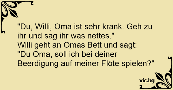 "Du, Willi, Oma ist sehr krank. Geh zu ihr und sag ihr was nettes."