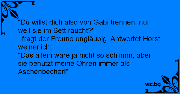 "Du willst dich also von Gabi trennen, nur weil sie im Bett raucht?"