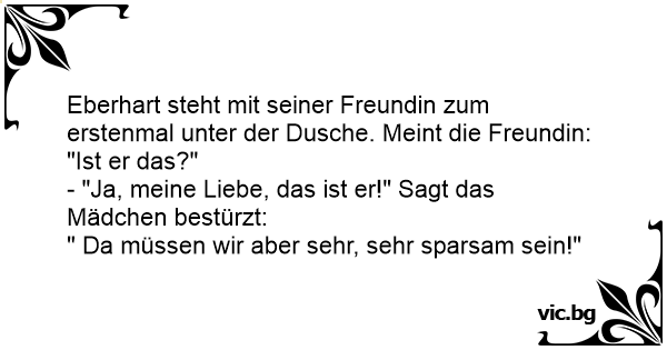 Eberhart steht mit seiner Freundin zum erstenmal unter der Dusche. Meint die Freundin: