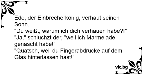 "Ja," schluchzt der, "weil ich Marmelade genascht habe!"