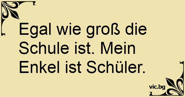Egal wie groß die Schule ist. Mein Enkel ist Schüler.
