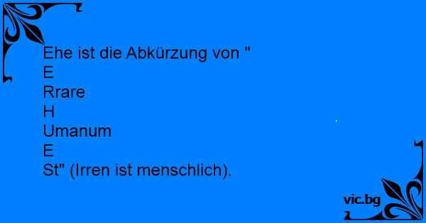Ehe ist die Abkürzung von "...