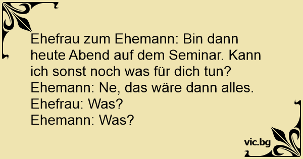 Ehefrau zum Ehemann: Bin dann heute Abend auf dem Seminar. Kann ich sonst noch was für dich tun?