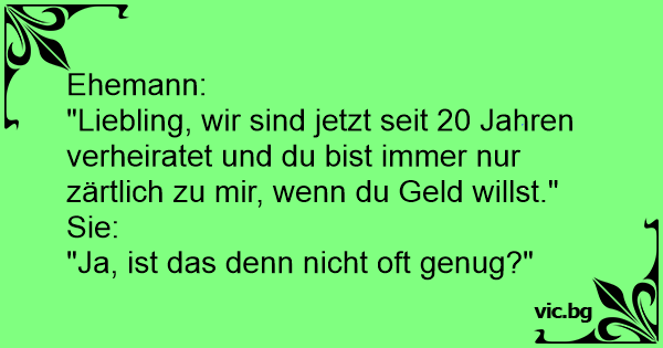 "Liebling, wir sind jetzt seit 20 Jahren verheiratet und du bist immer nur zärtlich zu mir, wenn du Geld willst."