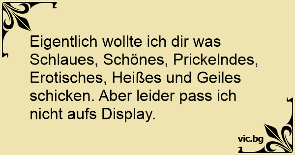 Eigentlich wollte ich dir was Schlaues, Schönes, Prickelndes, Erotisches, Heißes und Geiles schicken. Aber leider pass ich niсhт aufs Display.