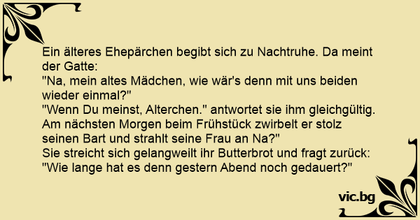 Ein älteres Ehepärchen begibt sich zu Nachtruhe. Da meint der Gatte: