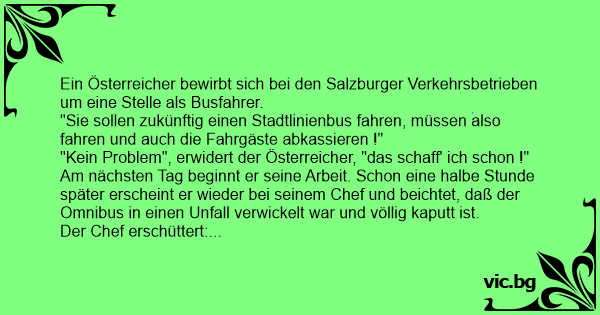 Ein Österreicher bewirbt sich bei den Salzburger Verkehrsbetrieben um eine Stelle als Busfahrer.