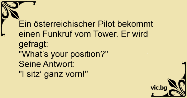 Ein österreichischer Pilot bekommt einen Funkruf vom Tower. Er wird gefragt: