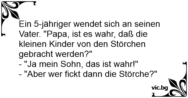 Papa zu Fritzchen: "Der Storch hat dir letzte Nacht eine Schwester gebracht." "Mensch Papi, da laufen die tollsten Frauen rum, und du vögelst den Storch!"